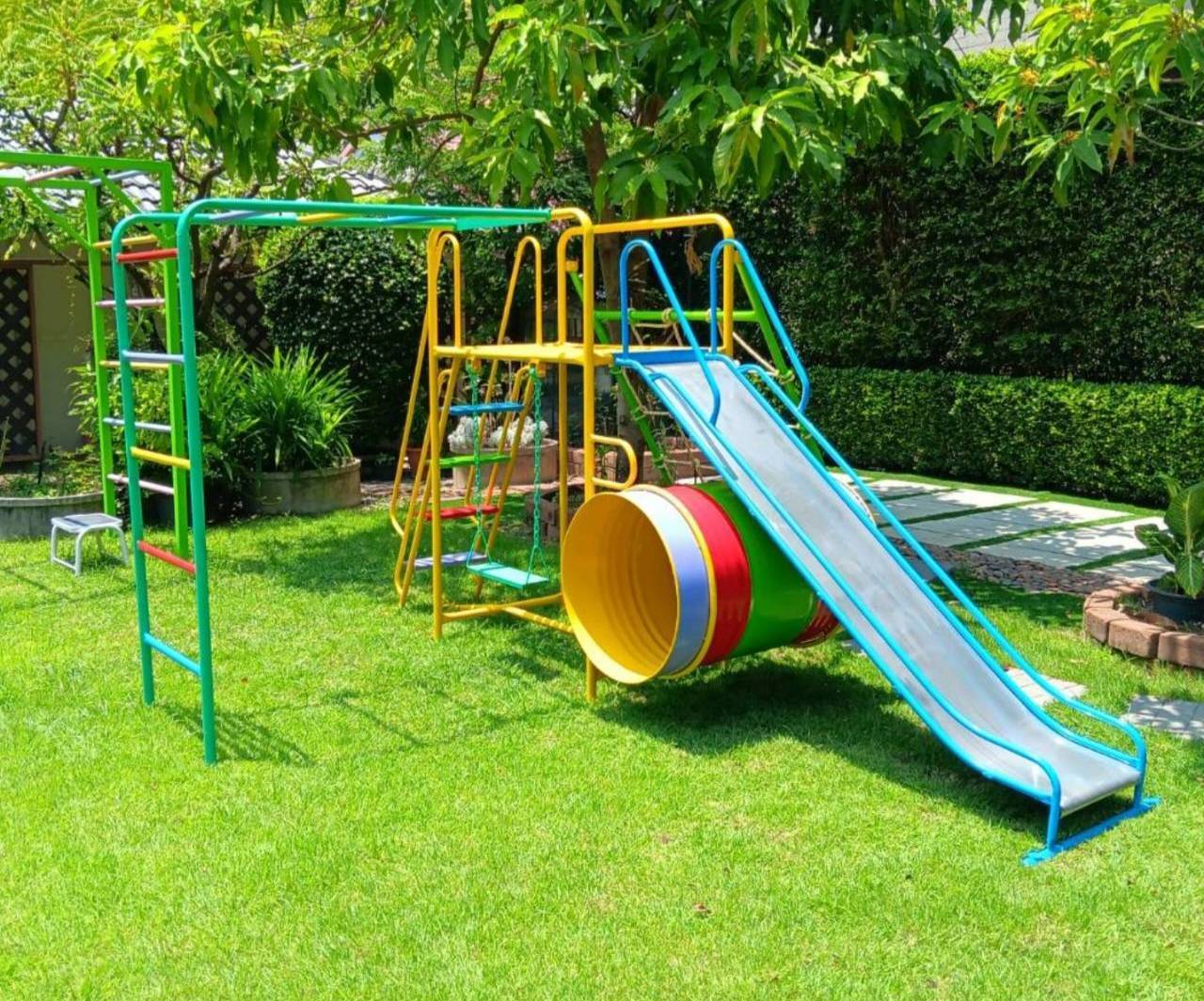 ชุดงานสไลเดอร์+ชิงช้า+ปีนป่าย+อุโมงค์ ชุดเดียวครบจบ งานเป็นเหล็กแข็งแรง ปลอดภัย เป็นงานสนามกลางแจ้งหรือวางในร่มก็ได้ ประกอบง่าย
